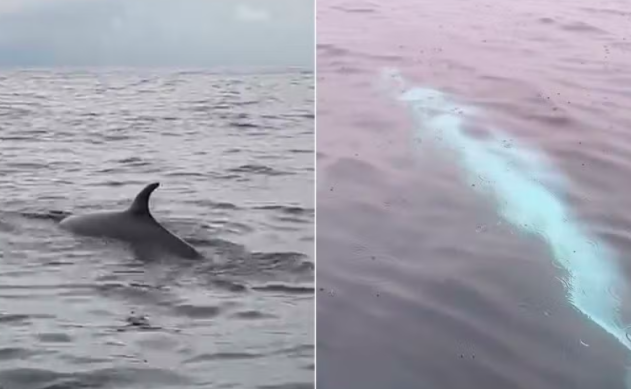 Uma baleia surpreendeu pescadores ao ser avistada na Baía de Santos, no litoral de São Paulo, na tarde de segunda-feira (27). O animal foi filmado pelo pescador Mário Alberto enquanto circulava próximo à embarcação, chegando a passar por baixo do barco e permanecer na região por alguns minutos.