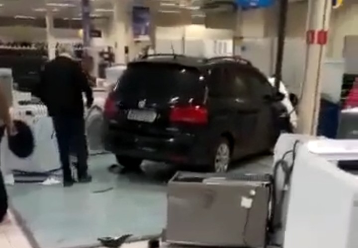 Mulher perde controle do carro que dirigia e acabou invadindo uma loja das Casas Bahia no centro de Guarujá na manhã...