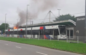 Vagão do VLT pega fogo em São Vicente, SP