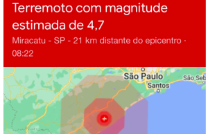 Um terremoto com magnitude estimada de 4,7 foi registrado na região de Miracatu em São Paulo. O abalo foi de 4.0° na...