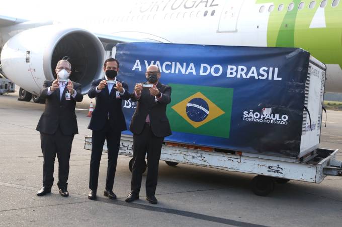 Os insumos para que o Instituto Butantan fabrique mais 14 milhões de doses da vacina contra o coronavírus CoronaVac. A carga, vinda...