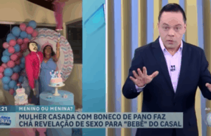 Mulher casada com boneco de pano, realiza chá revelação para seu...