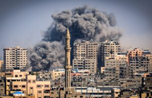 Ataques aéreos em áreas urbanas de Gaza, onde civis buscavam refúgio,...
