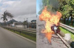 Motocicleta pega fogo em via movimentada no litoral de SP. Saiba...