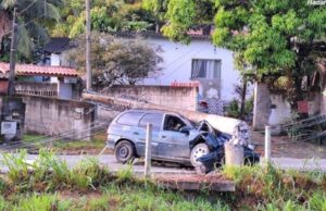 Carro bate em poste e interrompe acesso em via no litoral...