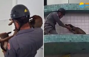 Cachorro é resgatado após ficar preso em marquise de prédio no...