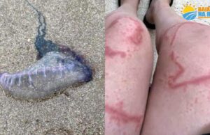 Jovem sofre queimaduras após contato com caravelas portuguesas