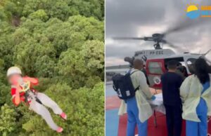 Criança é resgatada pelo helicóptero da PM em cachoeira no litoral...
