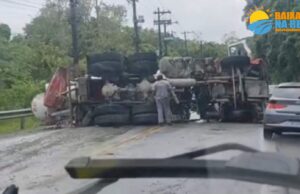 CARRETA COM CONCRETO TOMBA EM RODOVIA