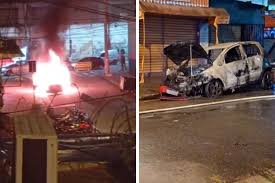 Um carro ficou completamente destruído após pegar fogo na noite desta segunda-feira (12), em São Vicente, no litoral de São Paulo....
