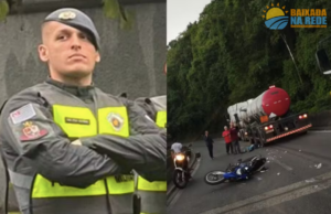 Policial Militar, Raphael Siqueira Gabia, de 22 anos, morreu após cair da moto e ser atropelado por uma carreta na Rodovia Anchieta,...