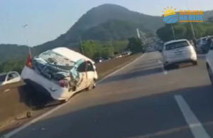 ACIDENTE COM CARRO NA PONTE DO MAR PEQUENO EM SÃO VICENTE.