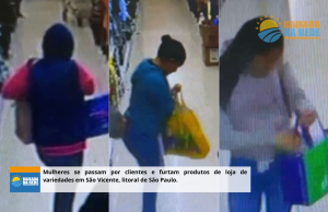 Três mulheres furtaram R$ 1,5 mil em produtos de uma loja de variedades em São Vicente. Elas fingiram ser clientes do comércio...