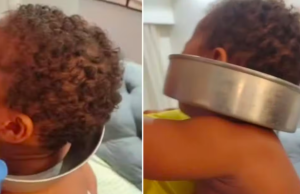 Um bebê de 1 ano e 5 meses foi resgatado pelo Corpo de Bombeiros após ficar com uma forma de bolo presa...
