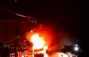 Incêndio destrói caminhão e atinge rede elétrica no litoral de SP.