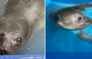 Elefante-marinho é resgatado em Guarujá no litoral paulista.