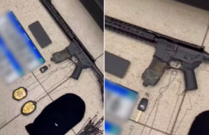 Réplica de fuzil e distintivos da Polícia Civil foram apreendidos em...