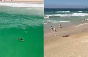 Lobo-marinho fica encalhado em praia de Guarujá, no litoral de SP.