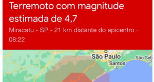 Terremoto de magnitude de 4.7 atinge litoral de São Paulo