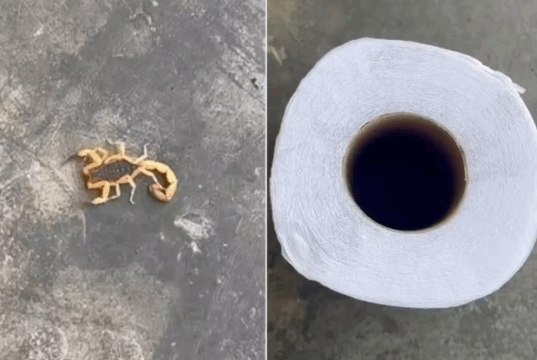 Casal encontra escorpião dentro de rolo de papel higiênico em Registro.