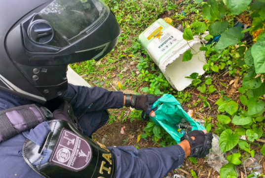 GCM localiza drogas em mata após fuga de suspeitos no litoral de SP.