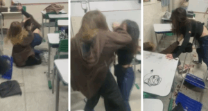 Aluna é atacada com tesoura por colega na escola.