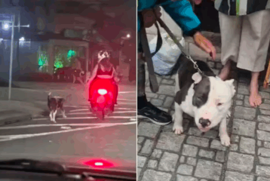 Polícia identifica casal flagrado puxando cão pela coleira enquanto andava de moto.