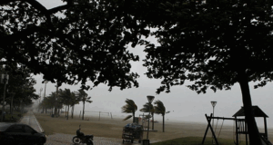 Pancadas de chuva e vento devem atingir a Baixada Santista.