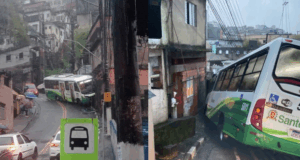 Acidente com micro-ônibus em Santos deixa uma mulher ferida.