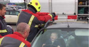Bebê se tranca em veículo e não para de sorri durante...