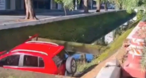 Veículo cai dentro de canal em Santos no litoral de SP