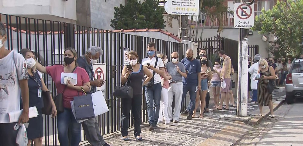 Policlínica de Santos registra grande fila para a vacinação contra Covid