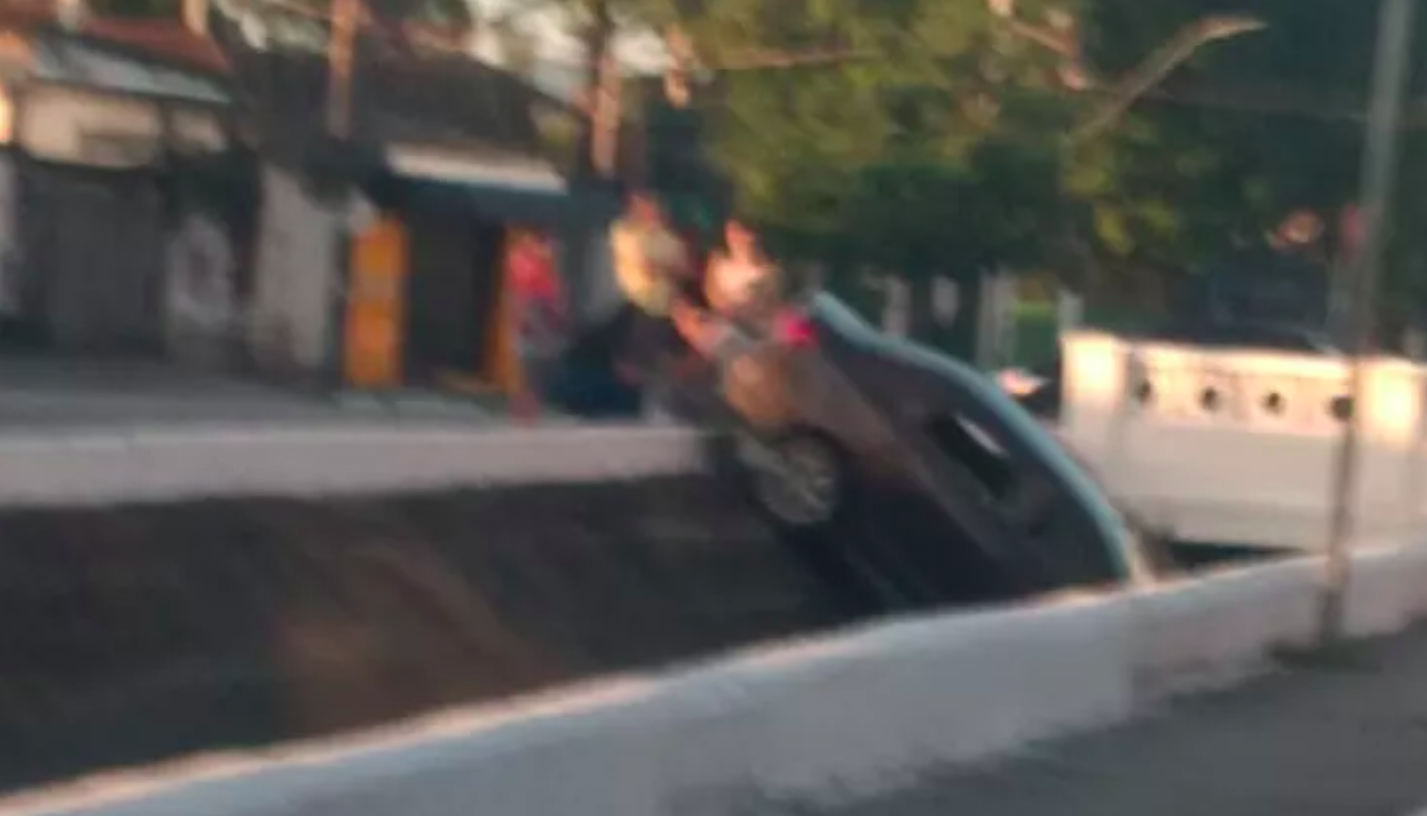Carro cai em canal após ser atingido por veículo em alta...