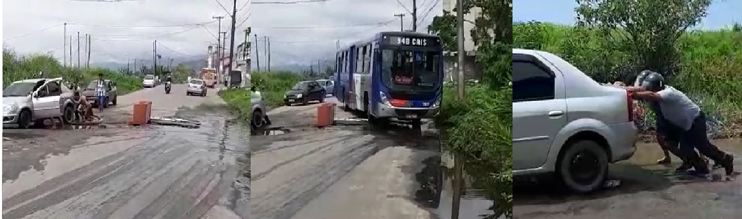 Descaso: Moradores da Vila Matias, em SV, reclamam de buracos enormes...