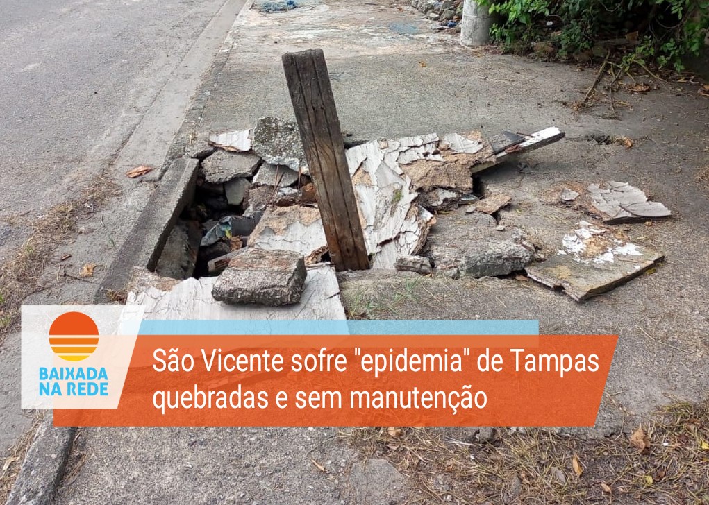 São Vicente sofre com falta de manutenção em tampas de galerias...