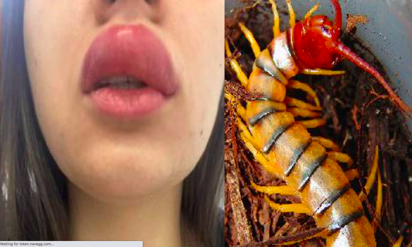 Jovem fica com lábio gigante após ser picada por lacraia em...