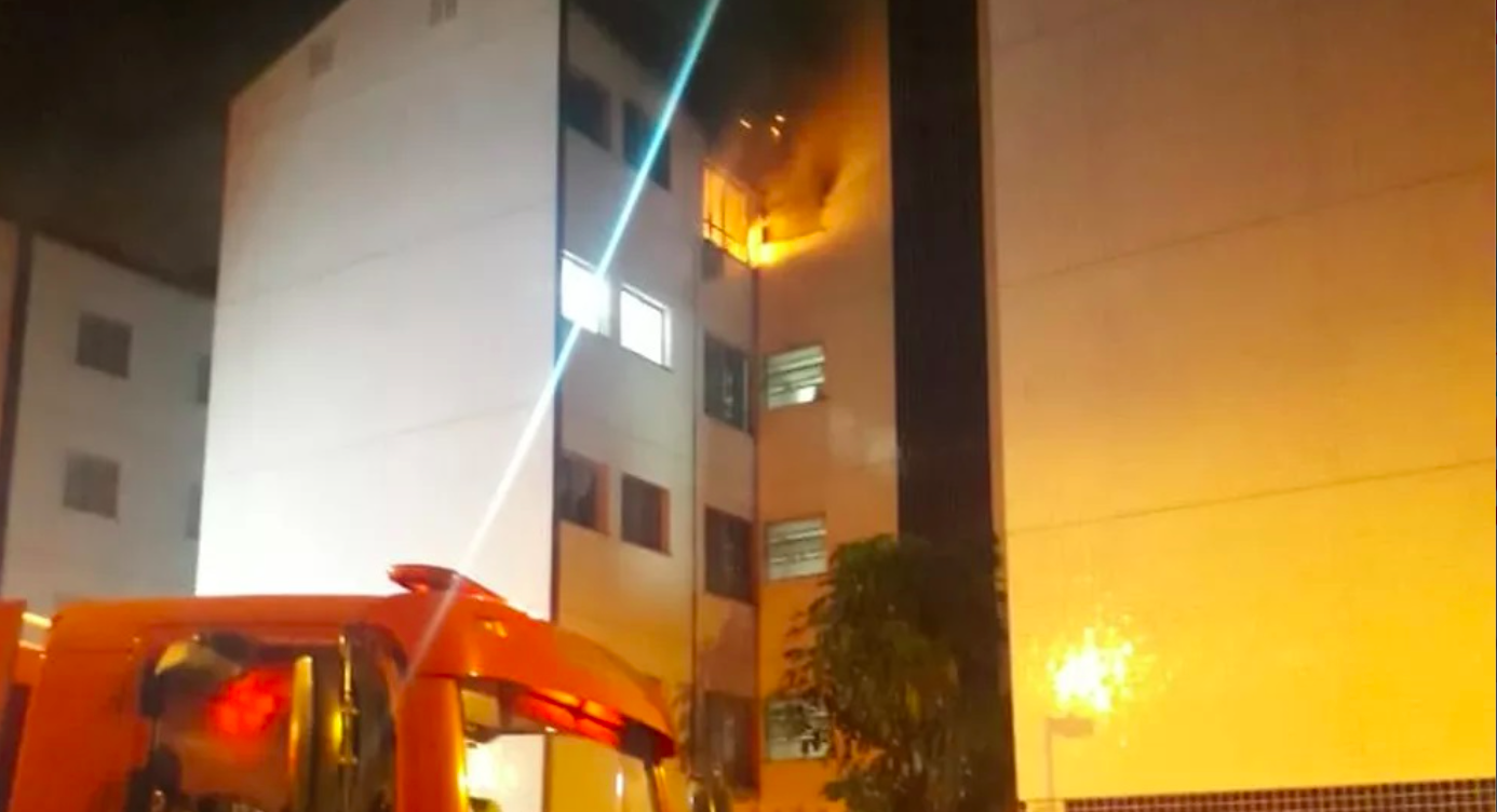 Explosão provoca incêndio em apartamento em São Vicente, SP