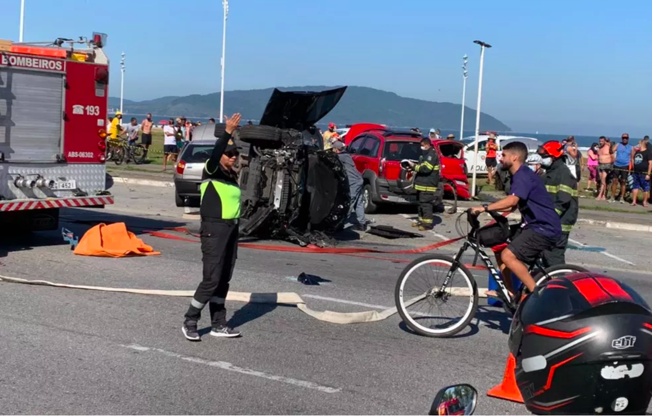 Carro de luxo capota em Avenida da praia atingindo seis veículos...