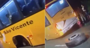 Com uma simples viagem a roda do ônibus se solta
