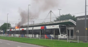 Vagão do VLT pega fogo em São Vicente, SP