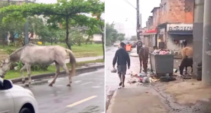 Cavalos são flagrados revirando lixo em São Vicente, SP