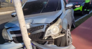 Homem foge após bater carro em poste no litoral de SP.
