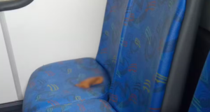 Passageiros encontram fezes em banco de ônibus em Santos.