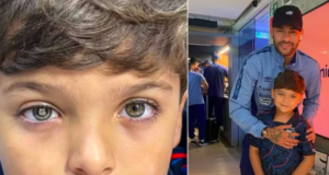 Torcedor mirim do Santos FC com escudo do time em prótese...