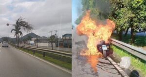 Motocicleta pega fogo em via movimentada no litoral de SP. Saiba...