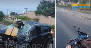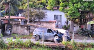 Carro bate em poste e interrompe acesso em via no litoral...