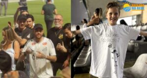 Menino recebe camisa autografada de Neymar e se emociona com presente