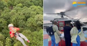 Criança é resgatada pelo helicóptero da PM em cachoeira no litoral...
