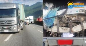 Acidente entre caminhões bloqueia Rodovia Anchieta sentido Cubatão