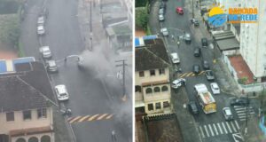 CARRO PEGA FOGO NA PORTA DO COLÉGIO STELLA MARIS, EM...